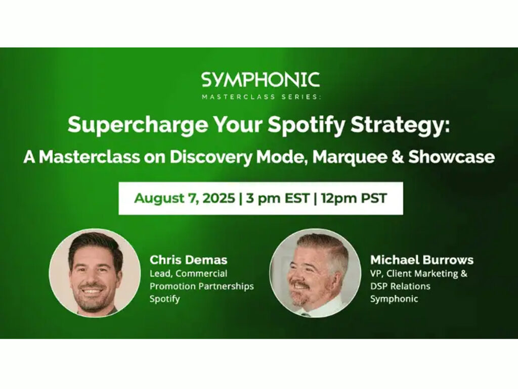 Intitulada “Supercharge Your Spotify Strategy”, a sessão integra a série Symphonic Masterclass Series e contará com a participação de dois nomes diretamente ligados ao desenvolvimento e aplicação dessas ferramentas dentro da plataforma.